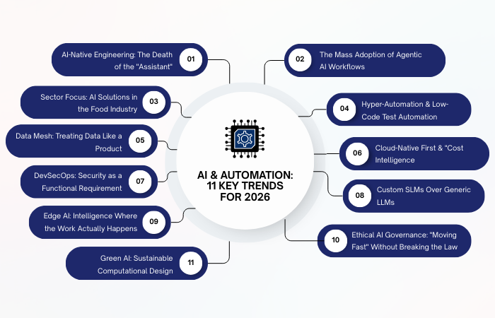 In 2026, AI has become core business infrastructure. This blog highlights 11 key AI and automation trends—from agentic AI to ethical and scalable AI—and shares a simple framework to help businesses turn AI from experiments into measurable ROI.