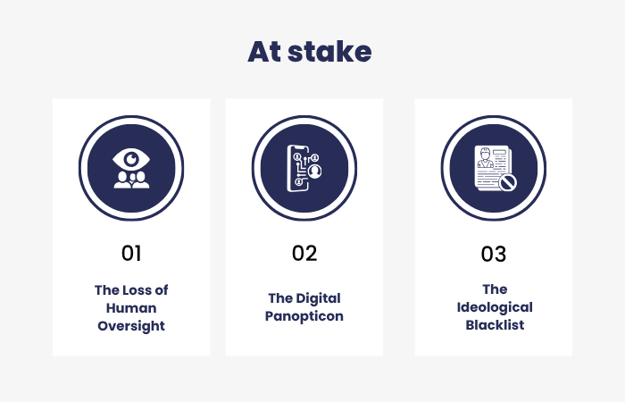 The Digital Panopticon: Scrapping guardrails allows for any lawful use, which critics argue will turn commercial AI into a tool for domestic mass surveillance.
